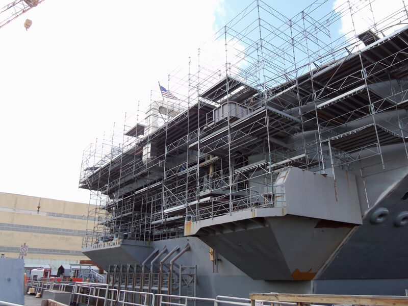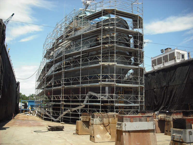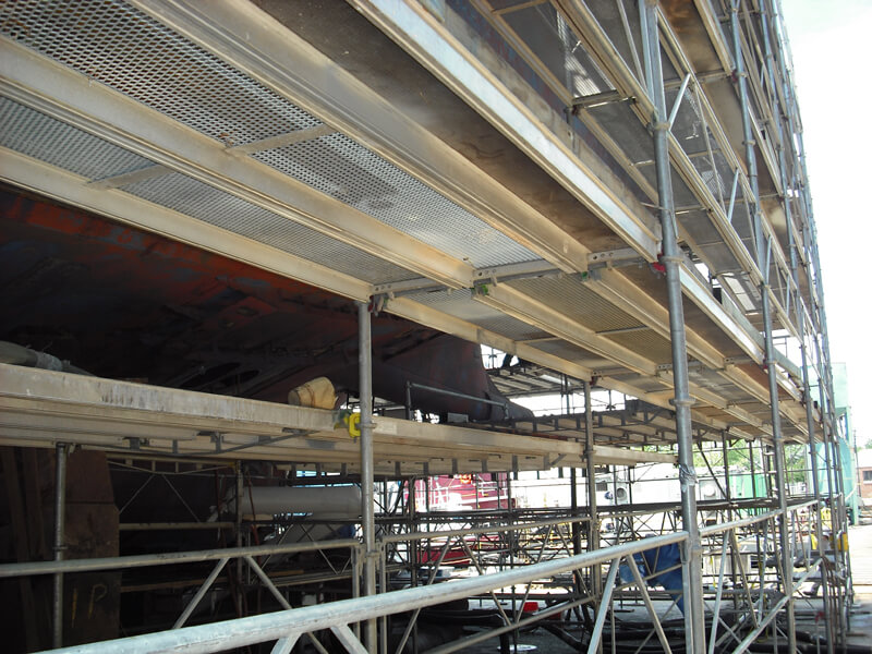 In order to efficiently build and repair ships, there needs be a solid staging process in place that allows your crew to proceed with their work and not worry about the support underneath and above them. Scaffolding Solutions has years of experience working in shipyards and creating custom applications for all types of ships.